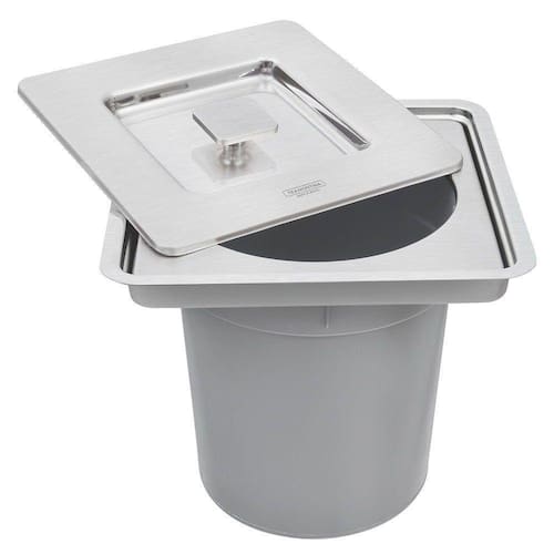 Lixeira de Embutir Clean Square em Aço Inox com Balde Plástico 5L Tramontina 94518/205 Descrição: A limpeza e a higiene na cozinha estão diretamente ligados ao bem-estar da sua família. Com a Lixeira de Embutir Tramontina Clean Square em Aço Inox com Balde Plástico 5 L, manter tudo perfeito e limpo em sua casa vai ser muito fácil. Para torná-la indispensável, foi produzida em aço inox, possui balde plástico removível que comporta 5 litros e seu aro interno tem anel de vedação que evita a proliferação de odores, deixando o ambiente muito mais agradável. Com todas estas qualidades não tem como você ficar sem a sua Instalação: Embutida Material: Aço Inox AISI 304 Espessura:0,8 mm Acabamento: Polido Tampa: Sim Balde plástico removível: Sim Capacidade: 5 L Saco de lixo recomendado: 10 - 15 L Para a limpeza, remover o balde plástico e lavar ambas as partes com uma esponja macia e detergente neutro. Nunca deixar objetos metálicos por muito tempo em contato com a lixeira, para evitar a corrosão. Evitar o contato com ácido muriático, água sanitária ou qualquer outro solvente que possa vir a agredir o produto. Para manter o brilho da sua lixeira, recomendamos o uso da pasta para polir e remover manchas em superfícies de aço inoxidável Tramontina. Contém: 1 Lixeira de Embutir Clean Square em Aço Inox com Balde Plástico 5L Tramontina 94518/205 Importante: Peso Líquido: 1,7000 kg. Peso Bruto: 1,7800 kg. Metragem: 0,025200 m³. Dimensões Embalagem (Compr. X Larg. X Alt.): 300x 300x 280 mm. Dimensões Produto (Compr. X Larg. X Alt.): 248x 248x 229 mm. Diâmetro: 24,8 cm. Capacidade: 5,00 l.