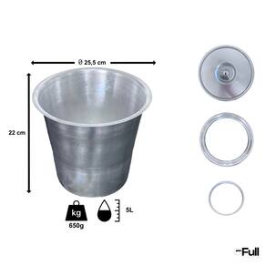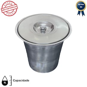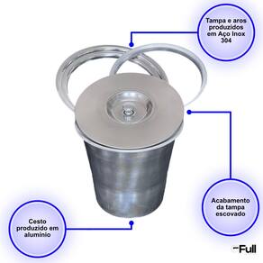 - Tampa e aros fabricada em Aço Inox 304 e cesto em Alumínio.