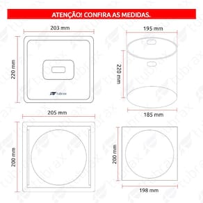 Sobrepor: (Acima da bancada), é necessário fazer um corte na bancada medindo 19,7 cm de comprimento X 19,2 cm de largura.