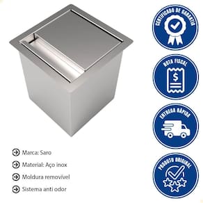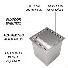 LIXEIRA DE EMBUTIR QUADRADA SARO EM AÇO INOX 4 LITROS DE BANCADA COM SISTEMA ANTI ODOR CLL