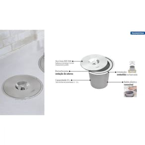 Tenha mais praticidade e estilo na sua cozinha com aLixeira de Embutir Tramontina Clean Round em Aço Inox com Balde Plástico 8L. Produzida em aço inox, aLixeira de embutir é perfeita para dar um toque de estilo ao seuLar. O balde plástico removível facilita aLimpeza e retirada deLixo. Possui aro interno com anel de vedação, que garante que os odores fiquem dentro daLixeira. Comporta 8L. Fabricada no Brasil, é o produto ideal para as atividades do dia-a-dia.