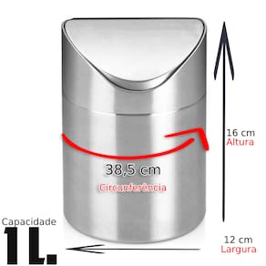Características do Produto Material de alta qualidade: aço inox resistente e de fácil manutenção Tampa basculante prática: evita contato direto com o lixo Design compacto e moderno: ideal para pequenos espaços Fácil de limpar e manusear
