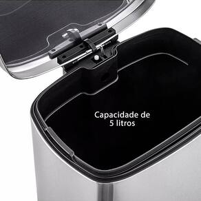 - Ideal para uso doméstico e em ambientes comerciaisLixeira de Pedal 5L em Inox com Balde Interno Removível