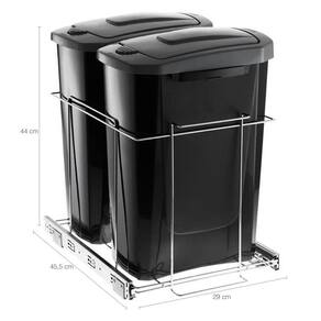 Lixeira Deslizante Slim Dupla 45,5cm x 29cm x44cm Cesto de Lixo 15L Preto Schmitt #Lixeiras para embutir #Cozinha Organizada #Modelo Slim Garantia: 90 dias / Peso: 2,888kg / Cor: cromado, preto e cinza / Ref: 72717 Dimensões totais: 45,5cm (C) x 29cm (L) x 44cm (A) Dimensões de cada lixeira fechada: 31cm (C) x 20cm (L) x 42cm (A) Altura da lixeira tampa aberta: 60cm. Capacidade: 15 litros cada lixeira. Não possui largura máxima para fixação: fixada na base. Contém: 2 lixeiras, presilhas, parafusos, corrediças e suporte para lixeira. Corrediça Telescópica: Abertura: 42cm a mais Fixação Dupla: Base ou Lateral do móvel Largura Mínima para Fixação: 30cm Tampas: Remoção total ou na base superior por click Cuidados: Não lavar com materiais abrasivos. Material: - Aço Cromado: matéria-prima de alta resistência, com camada extra de protetivo sobre a peça, garantindo o aspecto brilhante por muito tempo. - Plástico: lixeiras e tampas. A lixeira de embutir é uma ótima opção para quem não quer esconder e organizar o lixo da cozinha. O suporte duplo permite fazer a coleta seletiva. Produzidas em plástico resistente, as lixeiras possuem tampa em click, impedido a saída do odor do lixo e mantendo sua casa limpa. A estrutura em aço cromado possui resistência e facilidade ao manusear. Cada lixeira tem capacidade de 15 litros e para a limpeza basta retirar as lixeiras, pois são removíveis da estrutura.