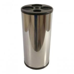 LIXEIRA DISPENSADOR DE COPOS DESCARTÁVEIS 4 TUBOS ( 03 Água + 01 Café) INOX Grandes consumidores de água, os brasileiros costumam gerar um grande volume de resíduos descartáveis em locais públicos, sobretudo copos plásticos. Utilizando o coletor para copos de água é possível organizar de forma prática, econômica e higiênica o descarte desses materiais. Corpo cilíndrico confeccionado em aço inoxidável AISI 430 (chapa de 0,5mm de espessura) com fundo em plástico ABS de alta resistência e tampa injetada em plástico polipropileno (PP) copolímero, com 4 (quatro) tubos extrusados de Plástico Poliestireno de Alto Impacto (PSAI)