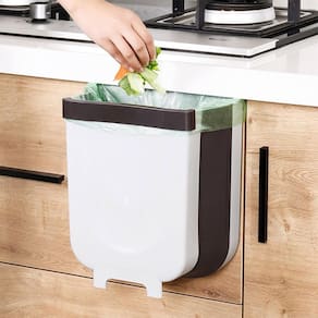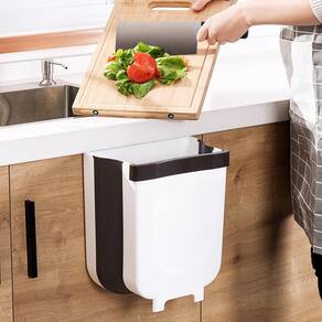 CARACTERÍSTICAS Lixeira Retrátil é dobrável, fácil de usar, economiza espaço e mantém as áreas limpas e livres de cheiros desagradáveis. Pode ser pendurada na porta da cozinha, armário, despensa, gavetas ou em qualquer outro lugar para você cozinhar e trabalhar num ambiente limpo.