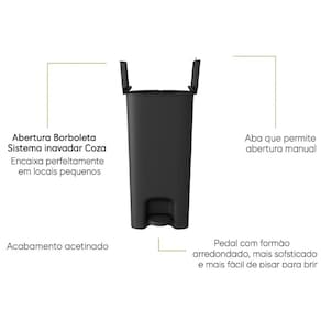 A lixeira dupla com pedal da Coza, com capacidade total de 20 litros, é a escolha ideal para quem busca praticidade, higiene e organização na separação do lixo. Equipada com dois compartimentos independentes, facilita a coleta seletiva ao permitir a separação entre resíduos orgânicos e recicláveis. Seu sistema de abertura central tipo borboleta economiza espaço vertical e se adapta perfeitamente a ambientes compactos. O acionamento por pedal garante maior higiene, evitando o contato direto com as mãos. Com design moderno e funcional, é perfeita para cozinhas residenciais, escritórios, consultórios e ambientes comerciais.