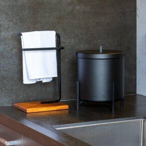 A Lixeira e Porta Toalha Glam com Base de Madeira D09 Preto, da Mpozenato é ideal para o seu Banheiro, resistente e sofisticado, conheça!