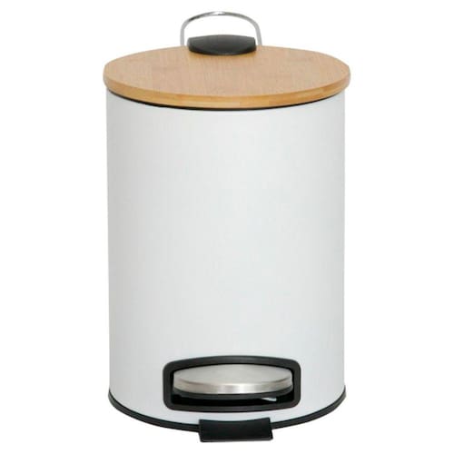 Lixeira em Aço Inox Branca Mimo Style 5 Litros com Tampa Bambu