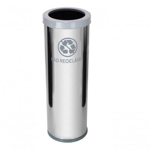 Lixeira confeccionada em aço inoxidável AISI 430, fundo em plástico ABS de alta resistência e tampa meia esfera plástica injetada em polipropileno (PP).