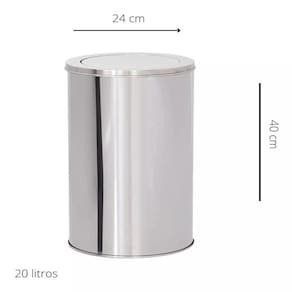 Lixeira Basculante Redonda Inox 24x40 20 Litros ? Elegância e Praticidade para Todos os EspaçosDescubra a combinação perfeita de estilo e funcionalidade com a Lixeira Basculante Redonda de 20 Litros. Feita em aço inoxidável, ela oferece durabilidade e resistência, além de um toque de sofisticação que se adapta a qualquer ambiente.Características do Produto:Material Premium: Fabricada em aço inoxidável, conhecido pela sua durabilidade e facilidade de limpeza, garantindo que sua lixeira mantenha um aspecto novo por muito mais tempo.Capacidade Ideal: Com 20 litros, é perfeita para áreas de alto tráfego como cozinhas, banheiros e escritórios, oferecendo o espaço necessário para um descarte eficiente de resíduos.Design Moderno: O design redondo com tampa basculante facilita o uso, permitindo que você mantenha o ambiente limpo e higiênico sem esforço.Estética Elegante: O acabamento polido do aro basculante traz um toque refinado, complementando diversos estilos de decoração e elevando o visual do seu espaço.Dimensões Compactas: Com 24 cm de largura e 40 cm de altura, essa lixeira é uma opção versátil que se encaixa perfeitamente em diversos ambientes, mesmo os menores.Se você procura uma lixeira que combine praticidade com uma estética refinada, a Lixeira Basculante Redonda Inox 24x40 20 Litros é a escolha ideal. Funcional e elegante, ela é o complemento perfeito para o seu ambiente, garantindo um espaço sempre organizado e estiloso.