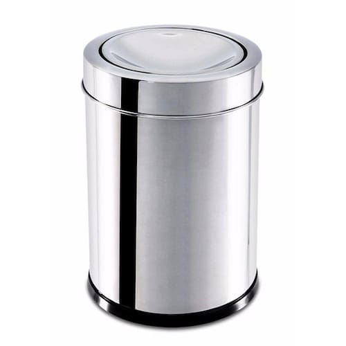 Lixeira em aço inox com tampa basculante.Para uso em banheiro ou cozinha.Base com anel plástico protetor de superfície.Capacidade 5 litros.Diâmetro 20,5 x altura 25 cm.Não possui balde interno. Marca: Aer House