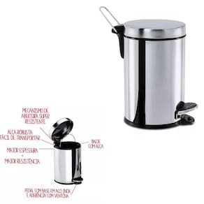 - Acionamento por vareta de Aço, maior durabilidade - Lixeira Cesto Lixo 12 litros totalmente em inox com recipiente plástico interno.