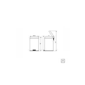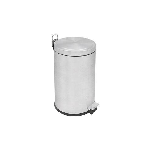 Material: Aço Inox AISI 430 Espessura: 0,4 mm Acabamento: Scotch Brite Tratamento anti digitais: Não Alça para transporte: Sim Abertura: Pedal Tampa: Sim, com sistema stay open Fechamento suave da tampa: Sim Balde plástico removível: Sim Capacidade: 12 L Saco de lixo recomendado: 15 - 20 L