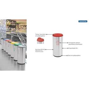 Lixeira Inox Tramontina Cápsula Selecta Plus Basculante com Acabamento Scotch Brite e Tampa Basculante Vermelha em Polipropileno 40 L Cuide de qualquer ambiente com a Lixeira Inox Tramontina Cápsula Selecta Plus Basculante com Acabamento Scotch Brite e Tampa Basculante Vermelha em Polipropileno 40 L. É um produto ideal para ambientes domésticos, comerciais ou de grande circulação de pessoas, escolas, restaurantes, supermercados, shopping centers e outros, possibilitando a separação correta do lixo. E mais: vem com um adesivo vermelho que indica o descarte de plástico, orientando a reciclagem de resíduos. Agora ficou fácil deixar qualquer lugar limpo e organizado. Informações Gerais Material: Aço Inox AISI 430 Espessura: 0,4 mm Acabamento: Scotch Brite Tratamento anti digitais: Não Alça para transporte: Não Tampa: Sim, basculante Balde plástico removível: Não Capacidade: 40 L Saco de lixo recomendado: 50 - 60 L Acessórios inclusos: - 1 Adesivo: Plástico Recomendações de Uso Produto para uso interno. Para a limpeza, lavar com uma esponja macia e detergente neutro. Nunca deixar objetos metálicos por muito tempo em contato com a lixeira, para evitar a corrosão. Evitar o contato com ácido muriático, água sanitária ou qualquer outro solvente que possa vir a agredir o produto. Para manter o brilho da sua lixeira, recomenda-se o uso da Luva de microfibra para limpar aço inox Tramontina Ref.: 94537/004 e também da pasta para polir e remover manchas em superfícies de aço inoxidável "Tramontina". Não utilizarpara limpeza, palha de aço inox ou outros elementos ou produtos que possam riscar o aço inox.