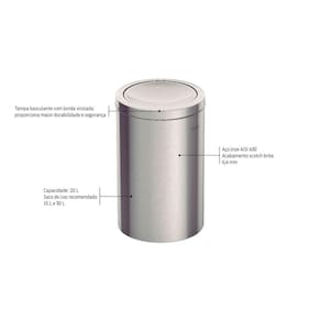 A Lixeira Inox Tramontina Swing com Acabamento Scotch Brite e Tampa Basculante 20 L, facilita o dia a dia. Produzida em aço inox com acabamento Scotch Brite, possui tampa basculante que proporciona um manuseio mais prático. A capacidade de 20 L torna uma peça ideal para qualquer ambiente. Portátil, é um produto com qualidade de fabricação brasileira.