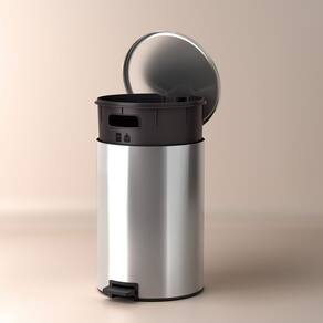O acionamento por pedal resistente suporta até 1 milhão de ciclos (aberturas e fechamentos), garantindo longa vida útil. A lixeira também possui balde interno removível com furação para prender o saco de lixo, além de base antiderrapante, que evita deslocamentos ao acioná-la.