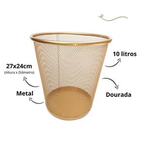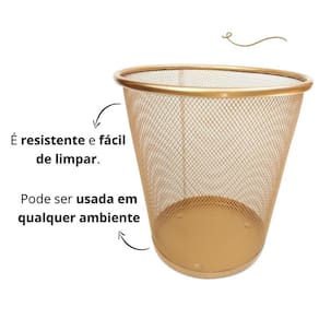 Lixeira luxo dourado ouro 10 litros aramada escritório kit