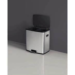 Material: Aço Inox AISI 430 Espessura: 0,4 mm Medidas: A 500mm L 485mm P 370mm Acabamento: Scotch Brite Tratamento anti digitais: Sim Alça para transporte: Sim Abertura: Pedal Tampa: Sim, com sistema Stay Open Fechamento suave da tampa: Sim Balde plástico removível: Sim Capacidade: 15+15 L Saco de lixo recomendado: 15 - 20 L Todas as imagens são meramente ilustrativas.