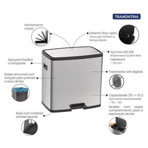Lixeira Octos Inox com 02 Baldes e Pedal 15+15L Tramontina