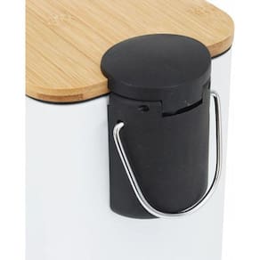 A lixeira possui uma abertura conveniente, equipada com um pedal, que permite que você descarte os resíduos de forma higiênica, sem precisar tocar na tampa. Além disso, a tampa inclusa ajuda a manter o conteúdo da lixeira discretamente escondido, mantendo seu banheiro com uma aparência limpa e organizada.