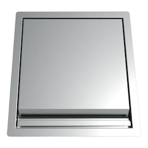 Tampa e moldura de acabamento totalmente em aço inox AISI 304, tampa com exclusivo sistema articulado, balde de 5 litros em aço inox AISI 430, sistema com ladrão para odor.