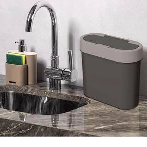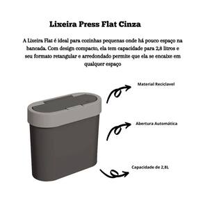 A Lixeira Flat é ideal para cozinhas pequenas onde há pouco espaço na bancada. Com design compacto, ela tem capacidade para 2,8 litros e seu formato retangular e arredondado permite que ela se encaixe em qualquer espaço. A tampa tem sistema de abertura automática e formato mais retangular, o que facilita no descarte de alimentos. O corpo possui aberturas laterais para encaixe da sacola plástica e o aro da tampa esconde a sacola, deixando o visual mais limpo. Bicolor, ela está alinhada com as tendências de Design que apresenta produtos em duas cores, permitindo combinações com diversos ambientes.