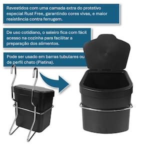 Suporte Cromado Com Lixeira Preta 2,5L Para Barra Parede Cozinha