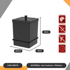 A lixeira quadrada de 6,5 litros com suporte e fixação por adesivo é a solução ideal para manter a sua cozinha, banheiro ou escritório organizado e livre de resíduos. Com um design elegante e compacto, esta lixeira se adapta perfeitamente a qualquer ambiente, enquanto o acabamento em preto fosco confere um toque moderno e sofisticado. O suporte com fixação por adesivo permite uma instalação rápida e sem complicações, sem a necessidade de furar a parede. Além disso, a capacidade de 6,5 litros é ideal para o uso diário, garantindo que você tenha um local conveniente para descartar pequenos resíduos. Fabricada com materiais duráveis e de alta qualidade, esta lixeira é resistente e fácil de limpar, garantindo durabilidade e praticidade.