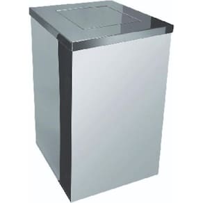 Lixeira quadrada com tampa vai-vem, tipo basculante, confeccionada em aço inoxidável aisi 430.