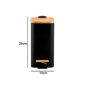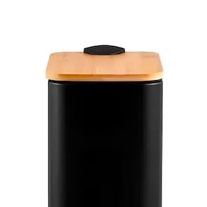 A lixeira possui: - Aro e Cesto interno - Fechamento soft com amortecimento - Tampa e pedal de bambu