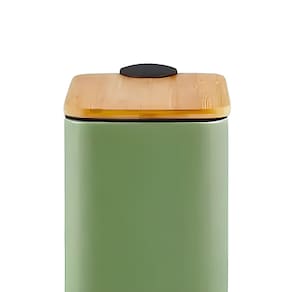 A lixeira possui: - Aro e Cesto interno - Fechamento soft com amortecimento - Tampa e pedal de bambu