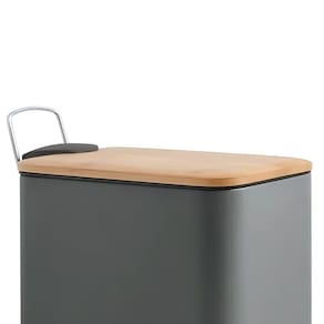 A lixeira possui: - Aro e Cesto interno - Fechamento soft com amortecimento - Tampa e pedal de bambu