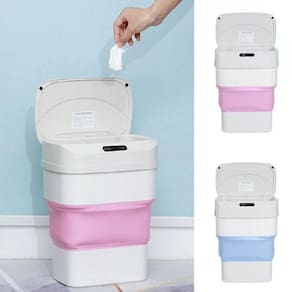 - Operação silenciosa sem contato com as mãos, a lixeira é conveniente para abrir com sensor de joelhos e mãos. - A lixeira pode ser dobrada e desdobrada, o que é ótimo para lixeira de mesa ou contêiner de lixo de chão. - Feito de plástico premium e material de silicone, a lixeira é durável e fácil de utilizar. - É adequada para escritório, sala de estar, quarto, hotel, restaurante, casa, etc.