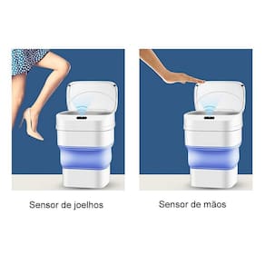 - Material: Polipropileno e Silicone Centro - Resistente a água - Altura Ajustável - Alimentação: Duas Pilhas AA não inclusas - Capacidade: Até 17.5 Litros - Sensor de função : infravermelho sensor - Abre em 3 segundos - Fecha em 5 segundos - Dimensões: Alt: 34cm x Larg: 20,5cm x Comp: 25,5cm Desdobrada / Alt: 15,5cm x Larg: 20,5cm x Comp: 25,5cm Dobrada - Peso: 1.046g
