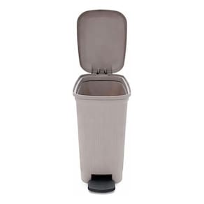 O pedal permite abertura sem uso das mãos, garantindo mais higiene no dia a dia. Com design moderno na cor cinza claro, combina facilmente com diversos ambientes.