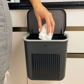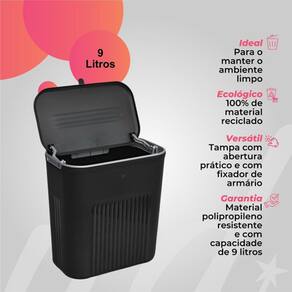 Descrição: Lixeira Suspensa Rose 9 Litros com Suporte Adesivo e Alça de Pendurar Arqplast.