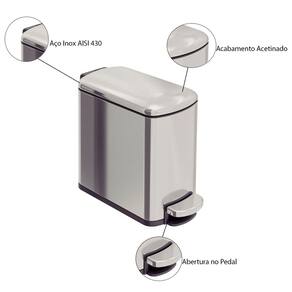 Lixeira Tipo D Slim Aço Inox Acetinado Balde Interno 6 Litros - Tramontina 94538/606