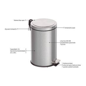 Lixeira Tramontina Brasil Plus com Pedal 12L Redonda Scotch Brite - UNICA