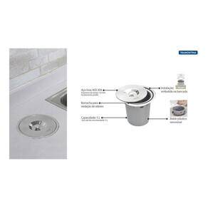 Lixeira de Embutir Tramontina Clean Round em Aço Inox com Balde Plástico 5 LitrosCom a Lixeira de Embutir Tramontina, você vai deixar sua cozinha mais organizada e cheia de estilo. Produzida em aço inox, a lixeira de embutir possui balde plástico removível, que facilita a limpeza e retirada do lixo. O aro interno tem um anel de vedação, garantindo que os odores fiquem dentro da lixeira.Instalação: EmbutirMaterial: Aço Inox AISI 304Espessura: 1 mmAcabamento: PolidoTampa: SimBalde plástico removível: SimCapacidade: 5 LSaco de lixo recomendado: 10 - 15 LDimensões:24,9 x 24,9 x 22,2 cm (Compr x Larg x Alt)Peso: 0,88 kgCapacidade: 5.00 LProduto novo original Tramontina, acompanha nota fiscal.