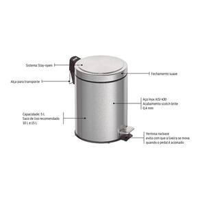 Não Ativar Lixeira Tramontina Prime Brasil Plus com Pedal 5L Redonda Scotch Brite - UNICA
