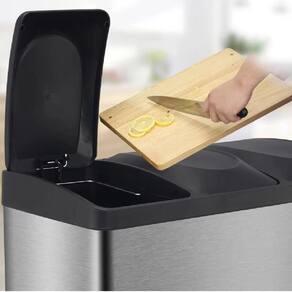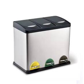 Lixeira Seletiva Tripla Inox Produto indicado para organização e sustentabilidade.Facilita a separação de resíduos Benefício essencial para quem deseja reciclar ês compartimentos de 10L cada Capacidade ideal para separar recicláveis e resíduos orgânicos.Abertura por pedal Maior higiene ao evitar direto com a tampa.Fabricada em aço inox resistente Durabilidade e visual internos removíveis Praticidade na troca de sacos e antiderrapante Protege o piso e mantém a lixeira estável.Praticidade e consciência ambiental Motivo-chave para a compra.
