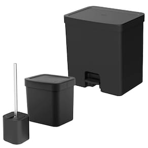 Jogo de Lixeiras para Cozinha e Banheiro e Escova Sanitária Preta - Ou