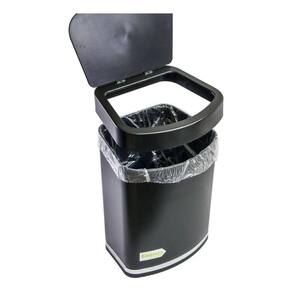 Fabricada em resina plástica de alta qualidade e com tamanho compacto, a lixeira é ideal para ser deixada sobre a pia ou a bancada. Sua tampa removível permite deixar o saquinho de lixo fixo e não aparente.Conta com acabamento em aço carbono cromado (aço em formato achatado) que traz destaque ao objeto usual do cotidiano.Medidas:Profundidade: 13cm / Largura: 18cm / Altura: 21cm / Peso: 0.421 kgEspecificações:Matéria-prima: Resina Plástica + Aço CarbonoCor/Acabamento: Preto / CromadoCapacidade: 2,5 litrosDicas de uso:- Para limpeza periódica recomenda-se o uso de um pano macio, água e sabão neutro.- Nunca utilize materiais abrasivos, lã de aço, esponjas ásperas, solventes ou produtos químicos corrosivos (cloro, água sanitária).INFORMAÇÕES IMPORTANTES:- A(s) cor (es) dos produtos podem sofrer variação de tonalidade, de acordo com a configuração do seu dispositivo ou monitor.