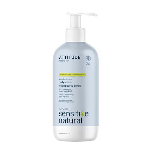 Loção corporal ATTITUDE para pele sensível com aveia, verificada pelo EWG, testada dermatologicamente, vegana, extra suave, sem perfume, 16 ml