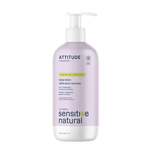 ATTITUDE Loção corporal para pele sensível com aveia, verificado por EWG, testado dermatologicamente, vegano, camomila, 40 ml