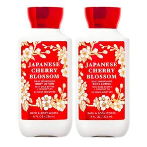- Conjunto de 2 loções Bath and Body Works Japanese Cherry Blossom, 8 onças cada frasco/total de 16 onças