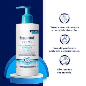 BEPANTOL DERMA LOÇÃO CORPORAL HIDRATANTE RESTAURADOR Hidrate sua pele com o novo Bepantol Derma Hidratante Restaurador Diário. Sua fórmula promove uma hidratação imediata e duradoura por até 48 horas* Marca: Não Informado