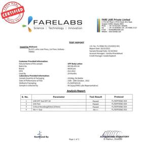 - Niacinamida, semente de cenoura e framboesa – A loção corporal WishCare FPS 50 contém benefícios adicionais de niacinamida, semente de cenoura e framboesa, que dá a você um tom de pele uniforme e funciona como um antioxidante para sua pele, complementando os benefícios da proteção FPS e reparando sua pele.