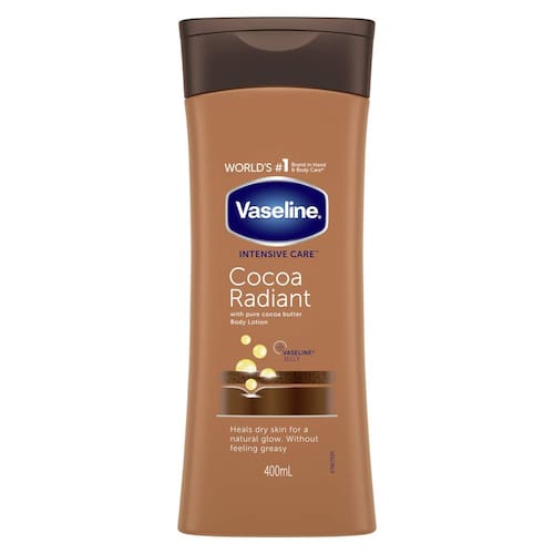 Loção corporal Vaseline Intensive Care Cocoa Radiant 100% manteiga de cacau para pele seca 400 ml